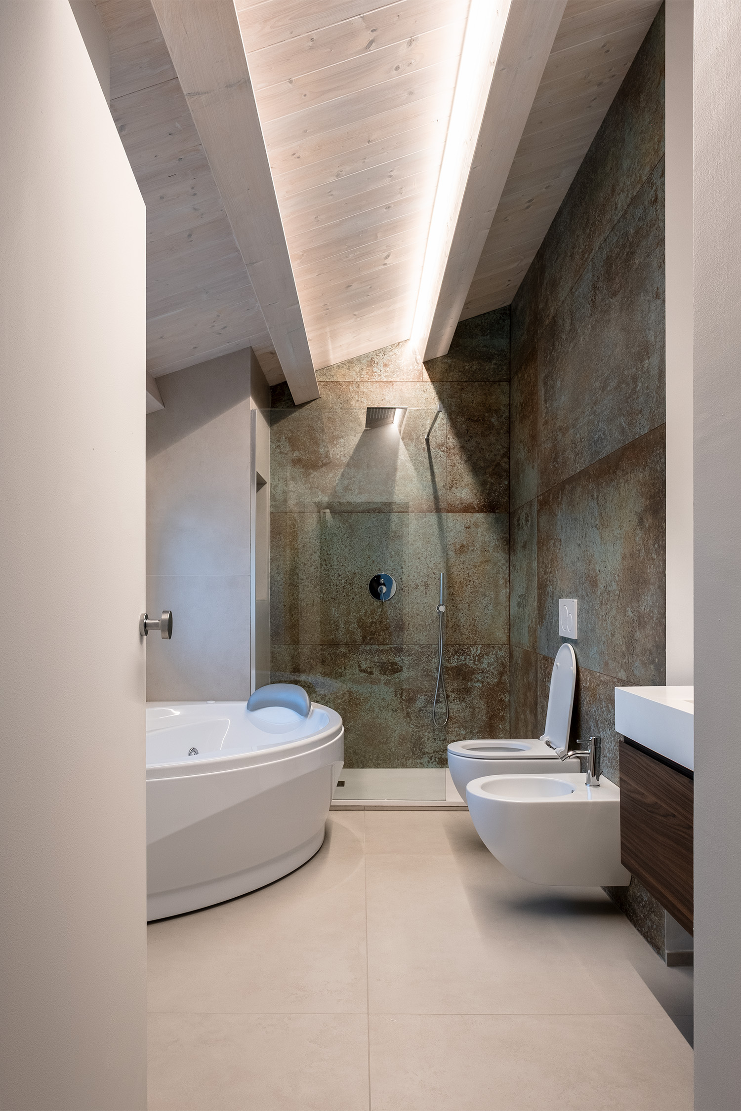 Al piano primo il nuovo volume è occupato da un’ampia terrazza a tasca che permette di avere uno spazio esterno vivibile anche per la zona notte.