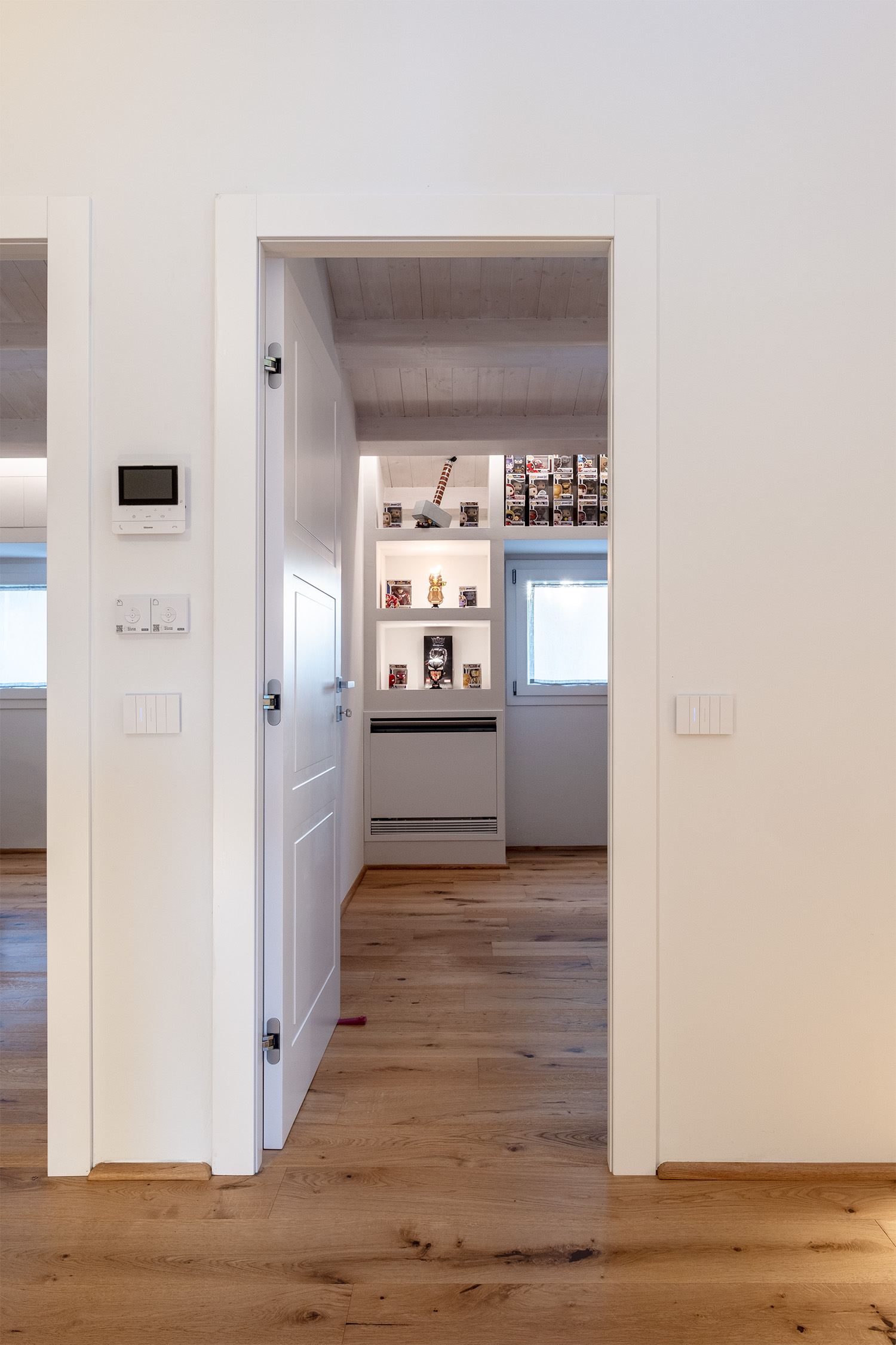 E’ stata fatta una riorganizzazione interna totale dell’appartamento in modo più funzionale rispetto allo stato attuale e sfruttamento migliore degli spazi sottotetto ad oggi solo ad uso accessorio. Questo è stato possibile grazie all’aumento delle altezze interne dovuto al rialzamento della copertura ed all’abbassamento del solaio interpiano.