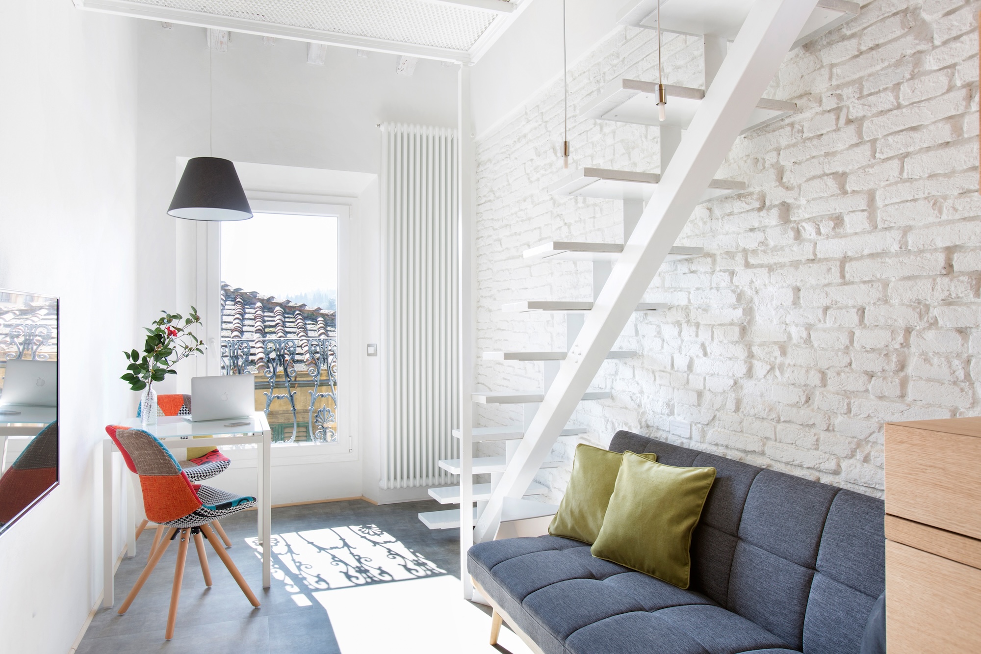 Progetto di restyling e arredo d’interni per piccolo monolocale di circa 23 mq, situato al terzo ed ultimo piano di un edificio plurifamiliare, posto nel centro storico di Firenze.